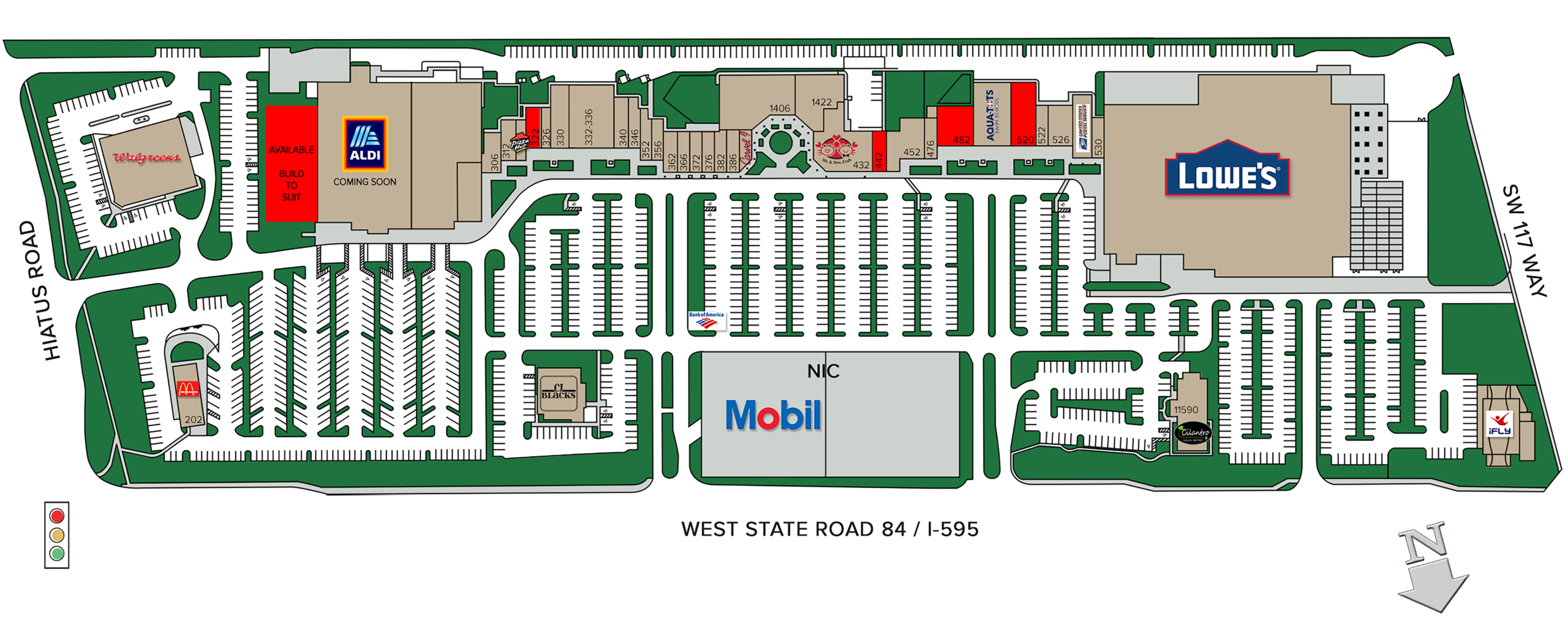 Plaza at Davie is a 325,479 SF shopping center located in central Broward County in the city of Davie, Florida. Plaza at Davie is a “billboard location” along Interstate 595 (the only east/west highway serving central and southern Broward County). The center has excellent visibility with 2,300 feet of frontage along 595. Sitting at the SWC of Hiatus Road (on/off ramp access to I-595) and W. State Road 84.
